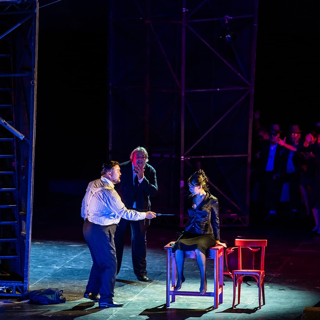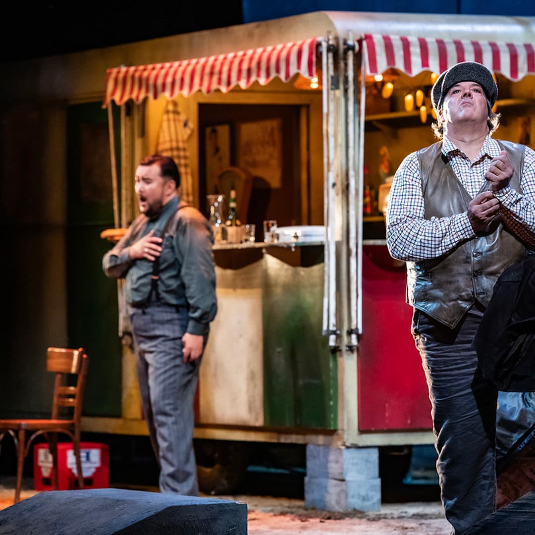 The combination of these two culmination points of musical ‘verismo’ in the double bill, performed in English under the abbreviation “CAV & PAG”, has established itself since the beginning of the 20th century. Like twins, they closely resemble one another and yet could not be more different: the overture is interrupted by singing, an interlude connects both acts (needless to say, CAVALLERIA RUSTICANA is also two acts long, the competition rules had simply necessitated that ‘in one act’ be written on the title page). Southern Italian ambiance is displayed in the authors´presence, and there are genre choir scenes with descriptions of the scent of oranges, or of ringing church bells. But on the other hand, we find a late Belcanto flowering with Mascagni, Leitmotifs and a diversity of orchestra effects with Leoncavallo; here, a dominance of the church and close-fisted morality comparable to Garcia Lorca, there, full-fledged vitality and the desire for pleasure.